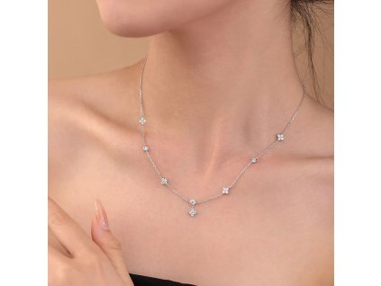 Náhrdelník je vyroben z ryzího stříbra 925 a má čtyřlístkový motiv se zirkony. Jeho elegantní a minimalistický design je ideální pro každodenní nošení i speciální příležitosti.