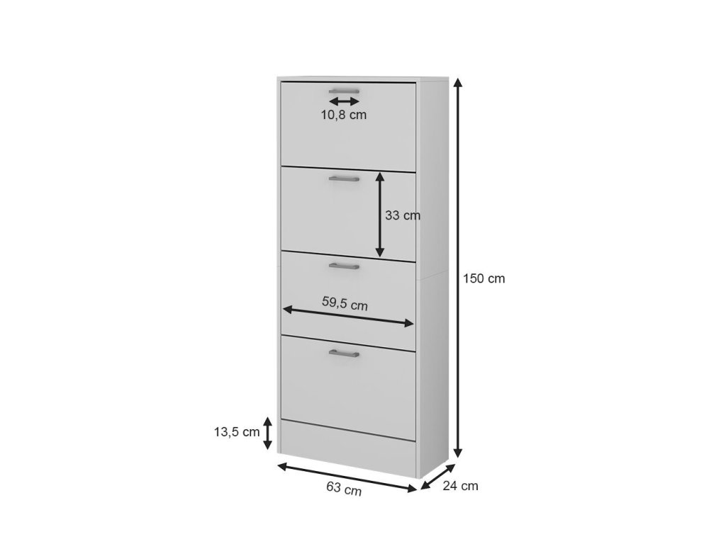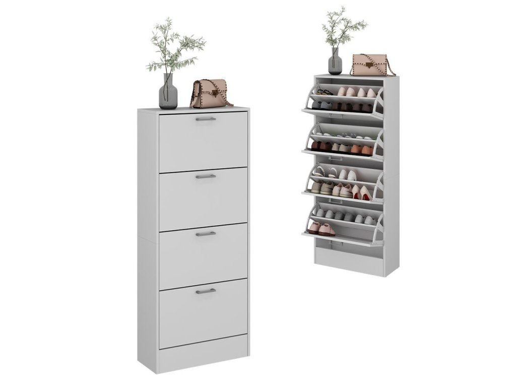 Botník Gregor je navržen tak, aby poskytoval maximální úložný prostor při zachování subtilních rozměrů. Díky hloubce pouhých 24 cm je ideální volbou do menších interiérů, kde je potřeba efektivně využít každý centimetr. Minimalistický vzhled v čistě bílé barvě umožňuje snadné sladění s moderním i klasickým nábytkem.