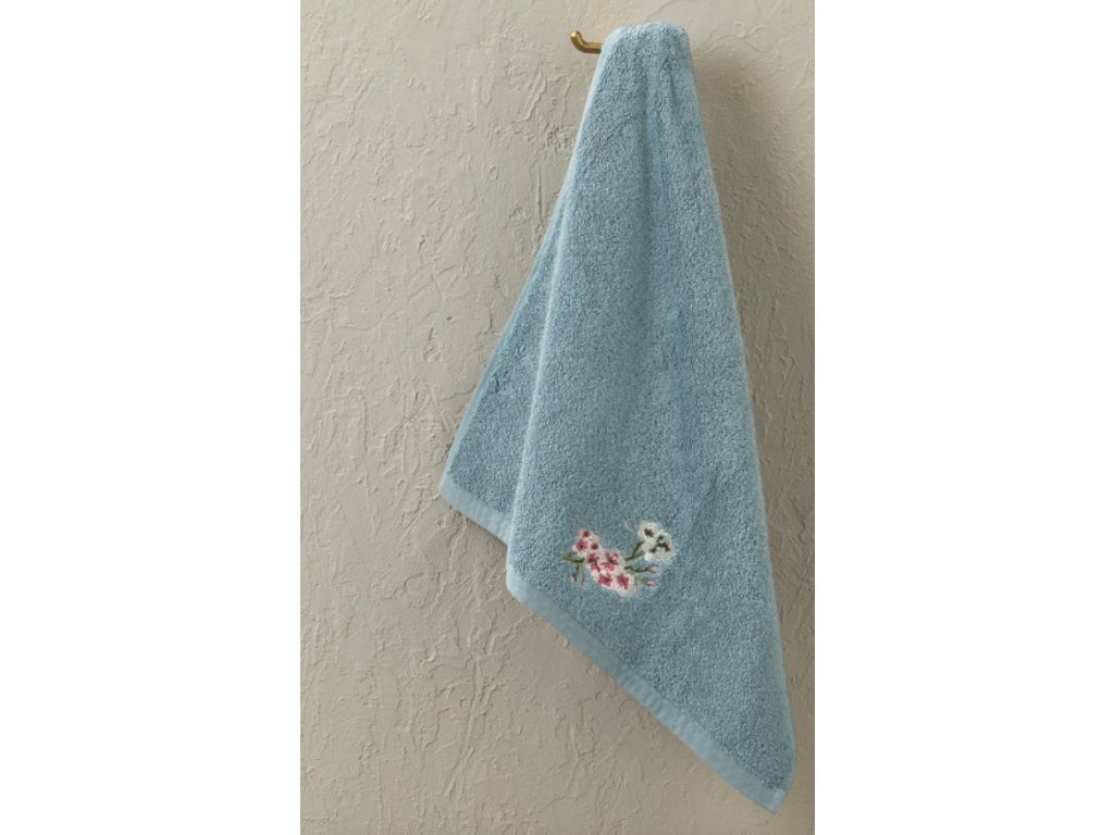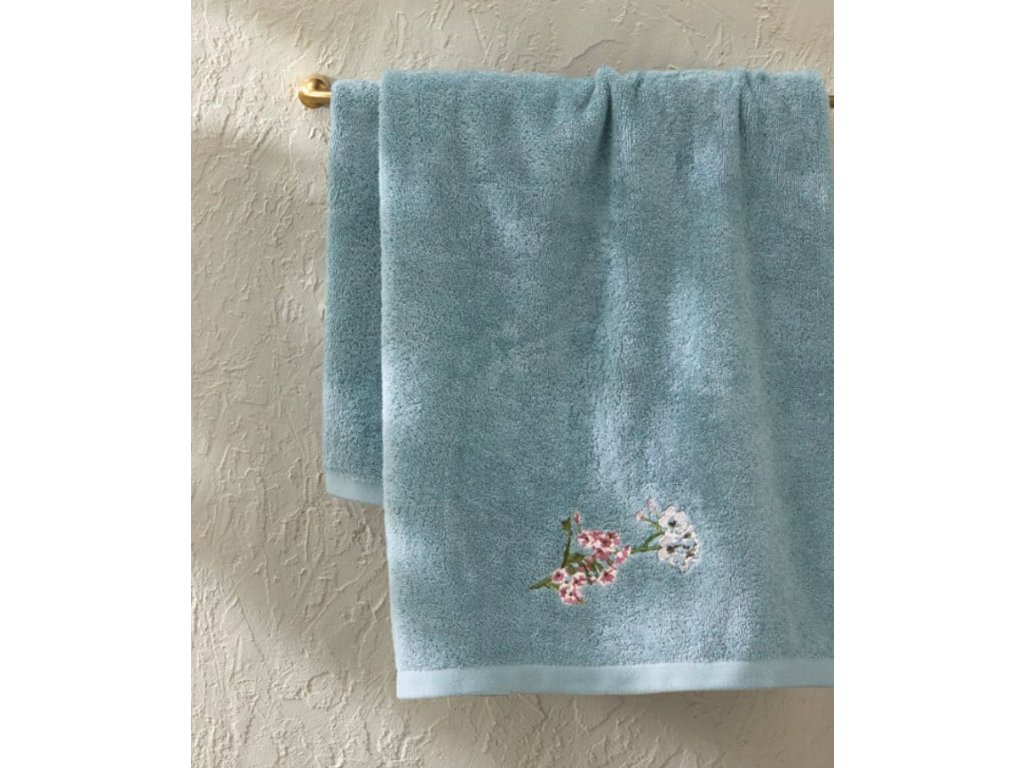 Kvalitní vyšívané koupelnové prádlo s jemným květinovým motivem v modré barvě. Rozměry tohoto prádla jsou 70x120 cm a je navrženo jako elegantní a funkční doplněk do koupelny.