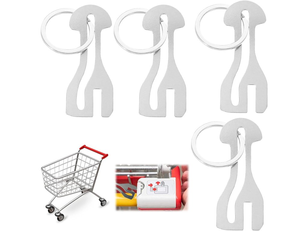 Design je navržen bez jakýchkoliv vzorů v čistém stříbrném provedení, které působí decentně a stylově. Každý uvolňovač je vybaven kroužkem pro snadné upevnění na klíče, takže je neustále po ruce. Konstrukce umožňuje uvolnění vozíku a následné okamžité vytažení klíčenky, která tak nezůstává během nákupu blokována v zámku vozíku. Sada čtyř kusů je ideální pro vybavení všech členů rodiny nebo jako záložní řešení na různé svazky klíčů.