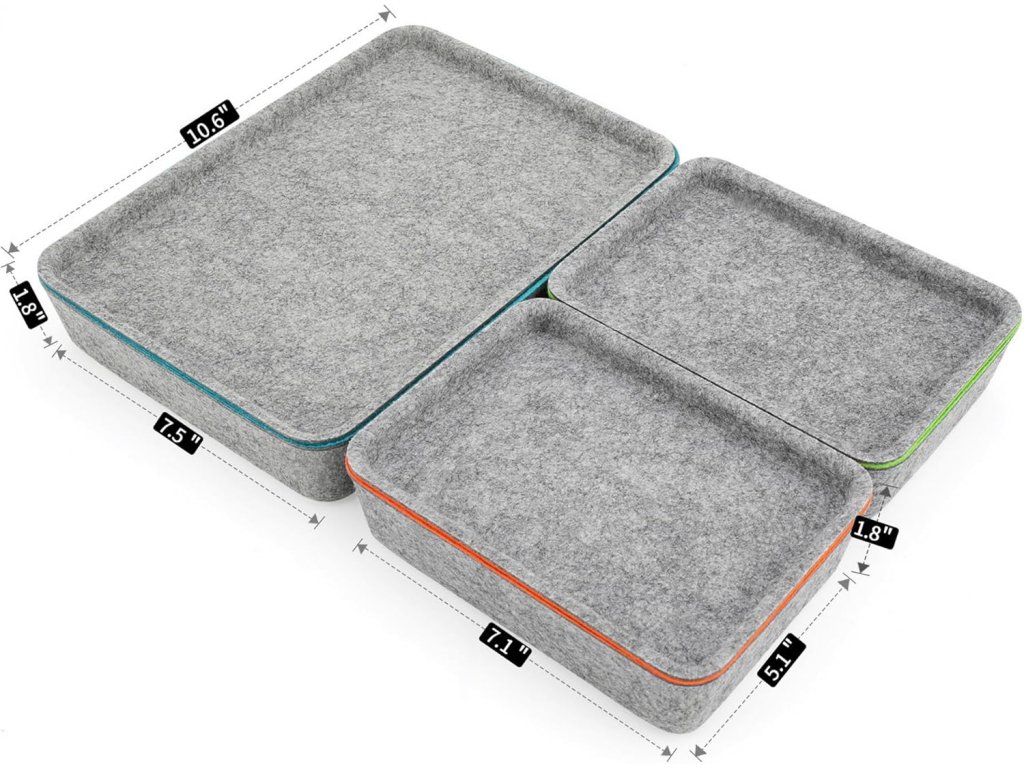 Welaxy 3dílná sada stohovatelných plstěných úložných boxů s víky, oranžová+zelená+šedá, pro domácí kancelář, stůl, make-up, kancelářské potřeby.