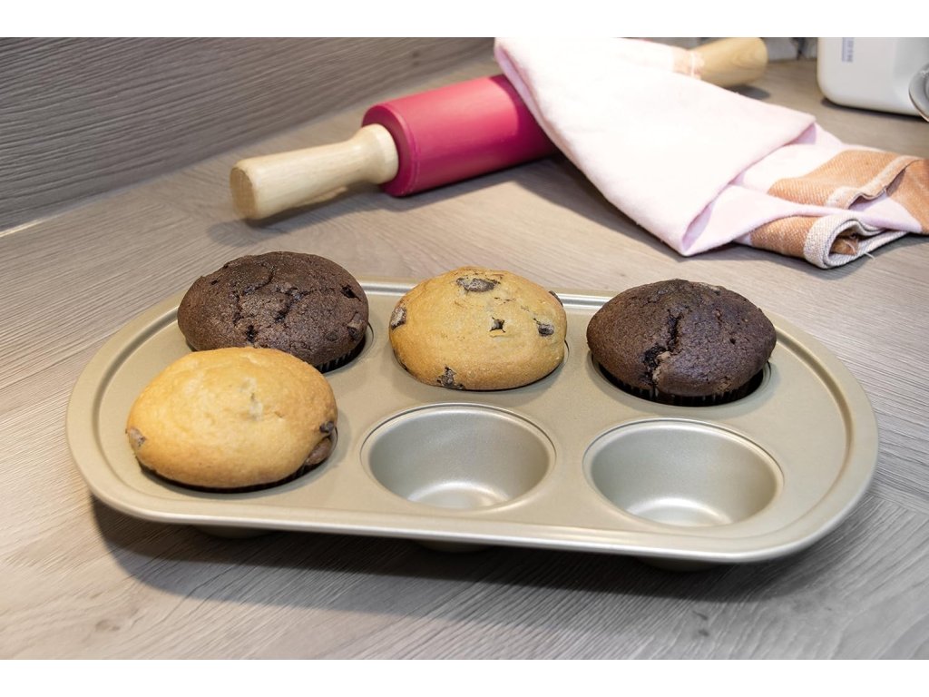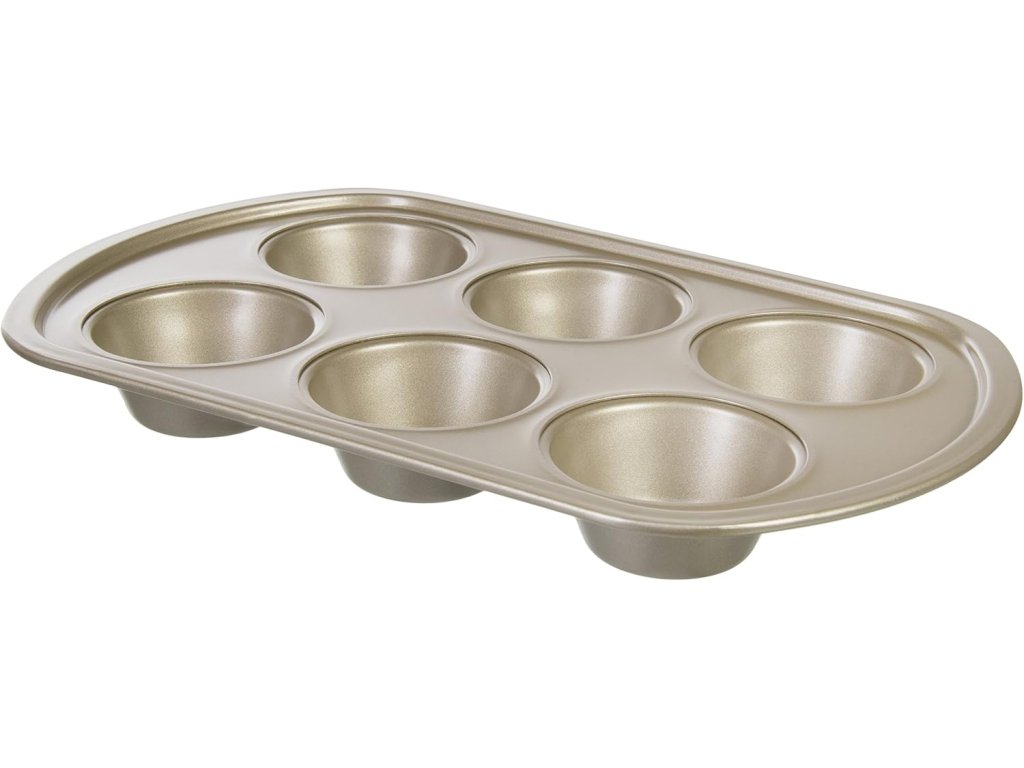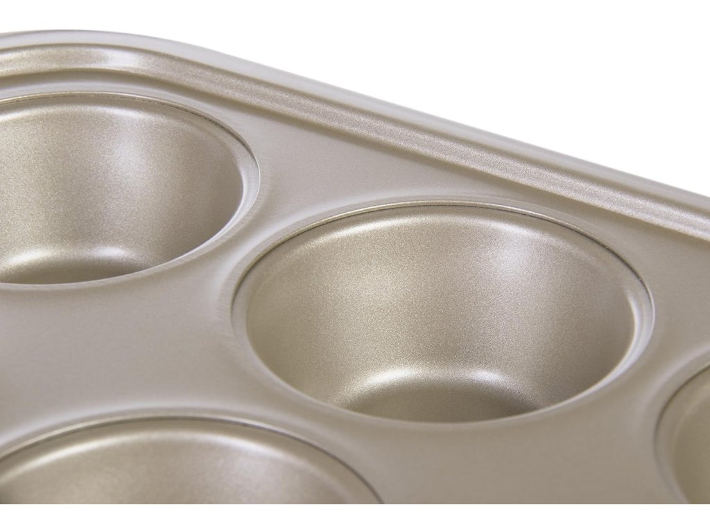 S touto zlatou formou na muffiny Wenco snadno upečete 6 lahodných muffinů najednou. Forma je vyrobena z kvalitního plechu a její rozměry jsou 31.9 x 19.8 x 3.9 cm. Zlatá barva dodá vašemu pečení elegantní vzhled. Ideální pro přípravu domácích muffinů pro různé příležitosti.