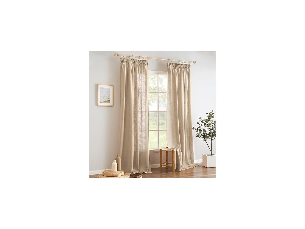 Woaboy Lněné závěsy s řasicí páskou béžové 140x245cm 2 kusy