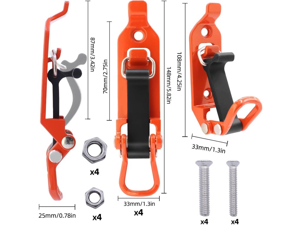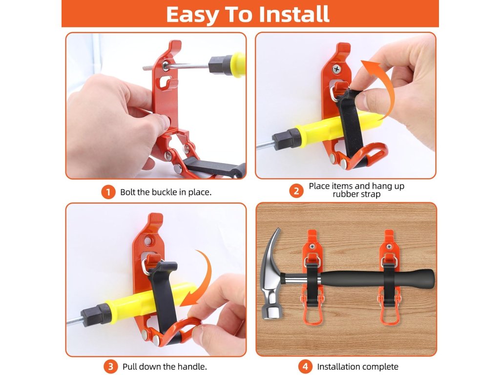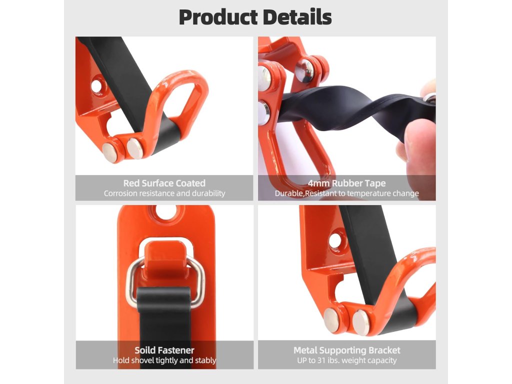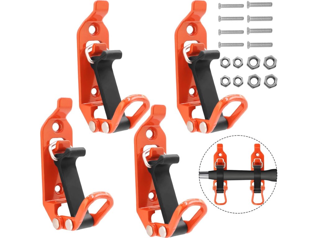 Každý držák disponuje vysokou nosností až 20 kg, což umožňuje bezpečné upevnění i těžšího vybavení, jako jsou kladiva nebo velké sekery. Instalace je díky přiložené montážní sadě, která obsahuje šrouby i matice, velmi rychlá a zabere pouze několik minut. Univerzální design je kompatibilní s celou řadou vozidel od SUV až po lodě a karavany. Systém využívá napínací zámek, který nářadí pevně sevře, a zároveň umožňuje jeho rychlé vyjmutí v případě potřeby.