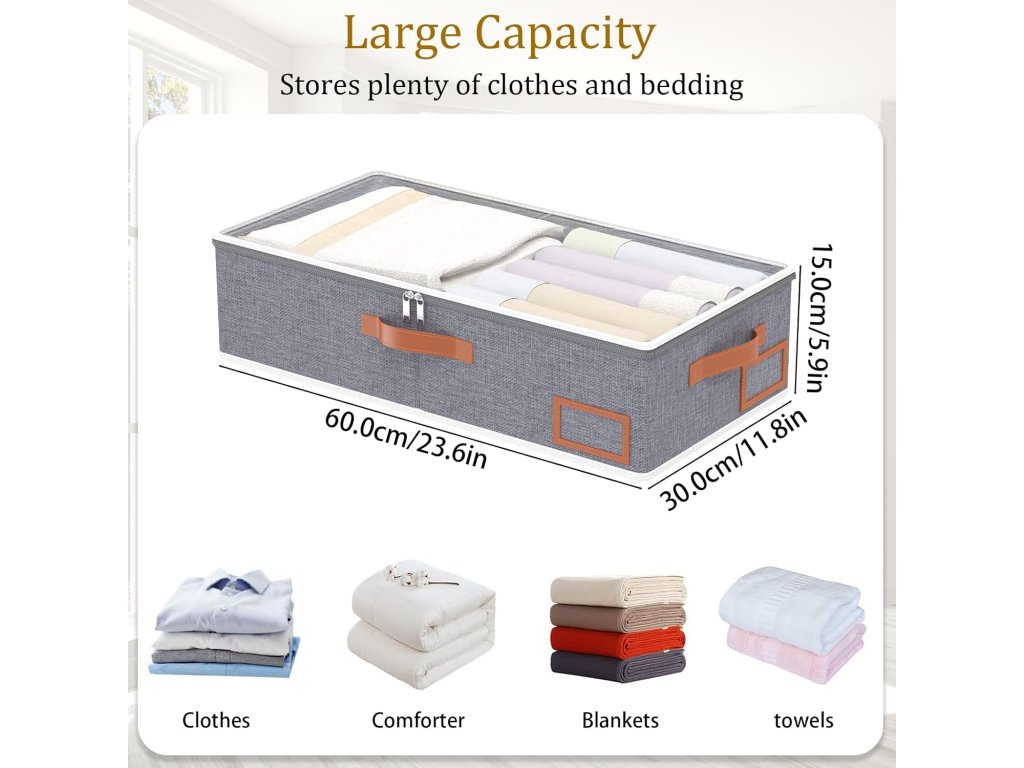 Sada 2 skládacích úložných boxů Yawinhe pod postel v šedé barvě, každý o rozměrech 60x30x15 cm.