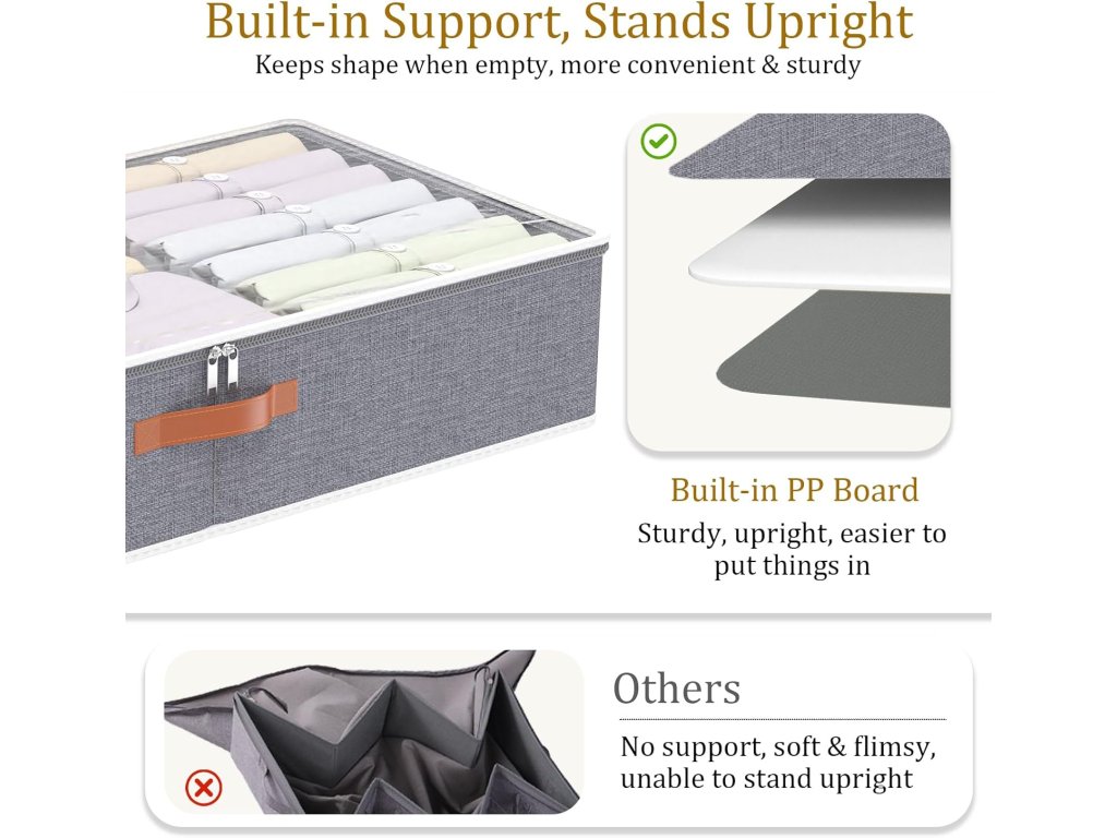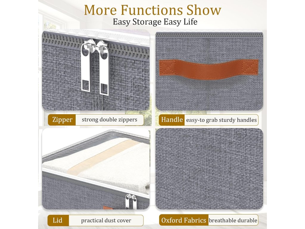 Boxy jsou vyrobeny z vysoce kvalitní oxfordské látky, která je odolná a prodyšná, takže vaše oblečení zůstane svěží i při dlouhodobém skladování. Spodní vložka dodává boxu lepší podporu a udržuje jeho tvar.