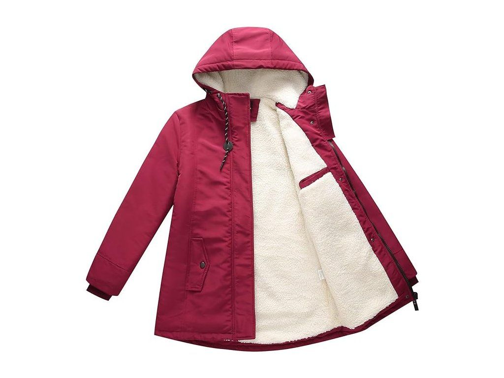 Červená zimní parka s kapucí zaujme teplou fleecovou podšívkou, pohodlným střihem a praktickými kapsami. Je ideální volbou na zimu, běžné nošení i venkovní aktivity v chladném počasí.