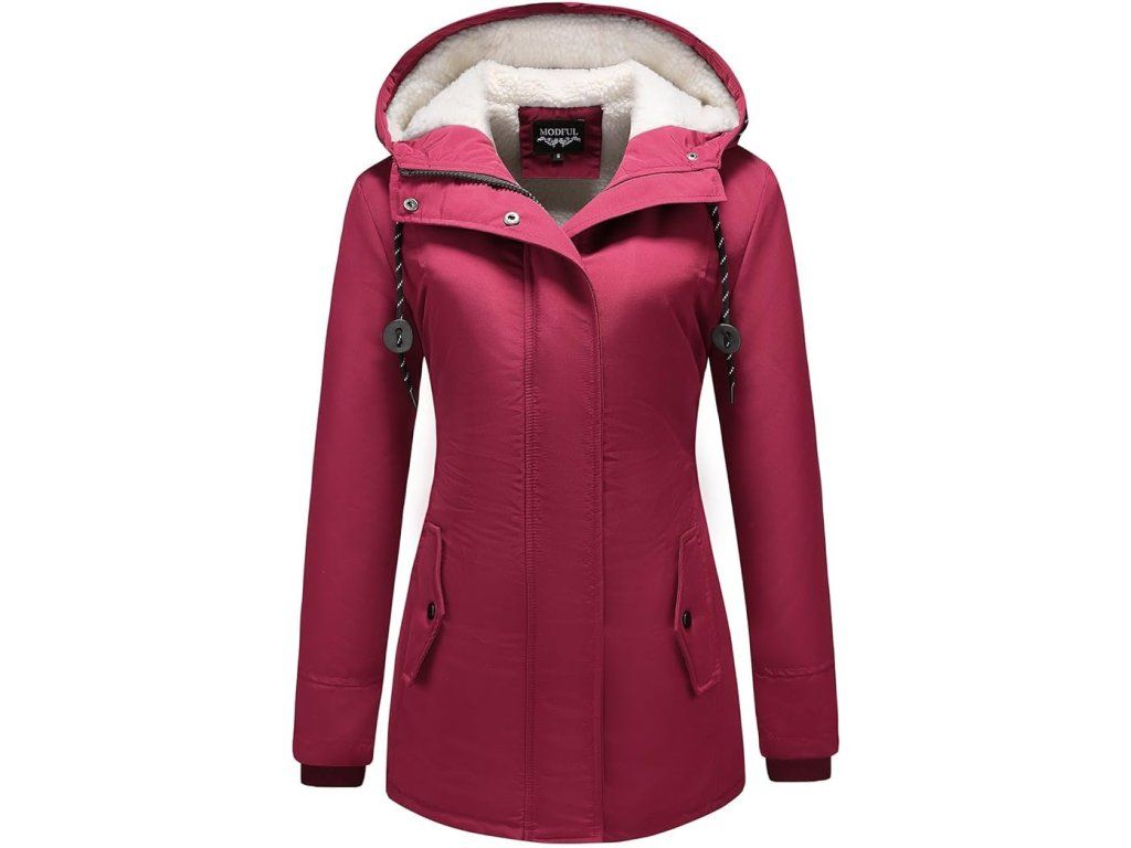 YINUDA dámská zimní parka s fleecovou podšívkou červená vel. M