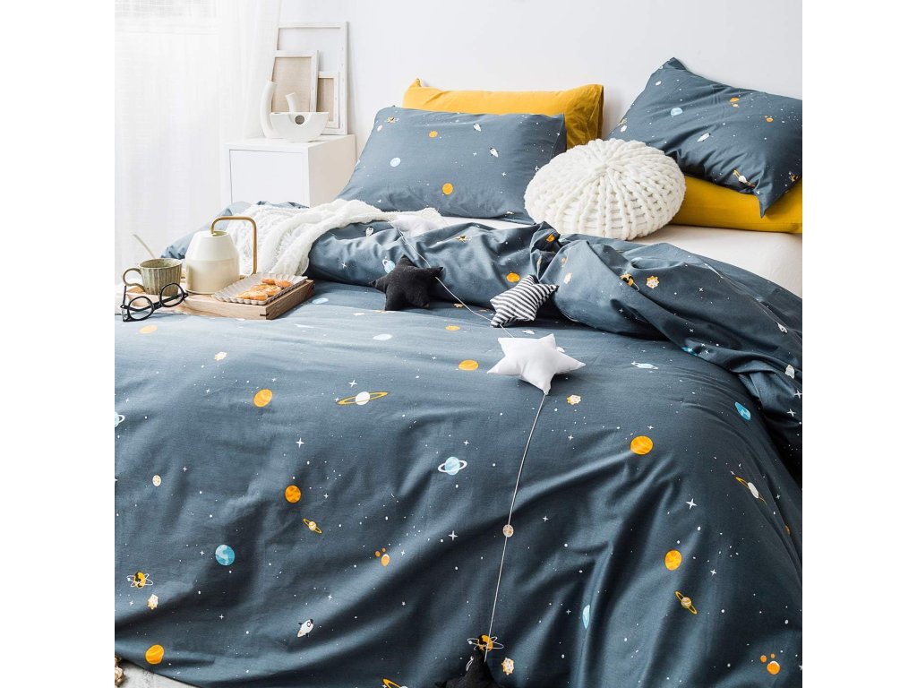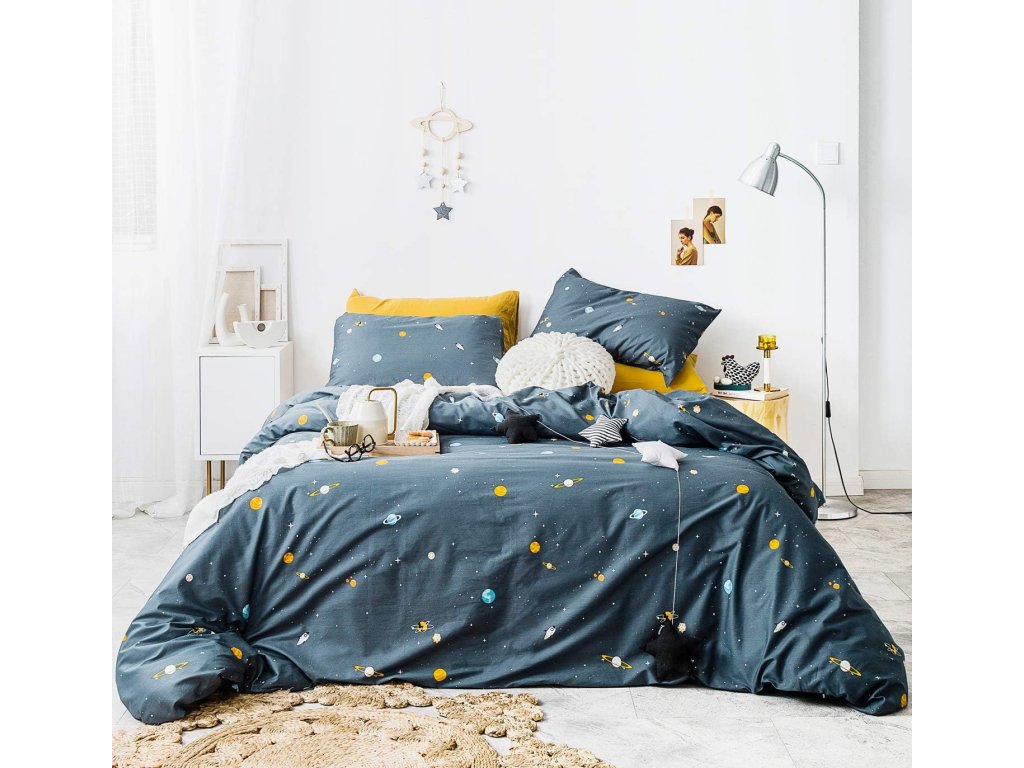 YuHeGuoJi bavlněné povlečení Vesmír modré 135 x 200 cm + 80 x 80 cm