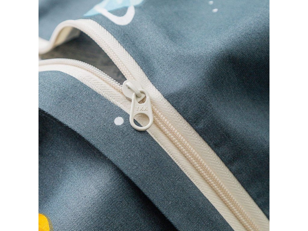 Povlak na přikrývku je vybaven kvalitním zipem pro snadné uzavření a vnitřními rohovými šňůrkami, které zabraňují nechtěnému posouvání výplně uvnitř povlečení. Povlaky na polštáře mají obálkové uzavření, které usnadňuje vkládání a vyjímání polštáře bez rizika vyvlečení během noci. Použitá bavlna je šetrná k pokožce a snadno se udržuje v domácích podmínkách.
