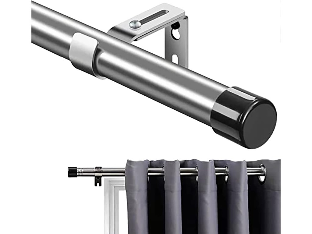 Tato odolná záclonová tyč je vyrobena z pevné nerezové oceli. Její konstrukce umožňuje nastavitelnou délku v rozmezí 76 až 238 cm díky překrývajícím se dílům o průměru 2,5 cm. Jednotlivé části tyče se jednoduše sešroubují. Sada obsahuje 2 nastavitelné držáky, 4 šrouby, 4 hmoždinky do sádrokartonu a návod k instalaci. Nerezový materiál zaručuje odolnost proti korozi a nosnost i těžších závěsů či záclon. S průměrem 2,5 cm je tato tyč stabilnější než běžné dekorativní tyče s menším průměrem. Instalace je snadná a rychlá – stačí sešroubovat jednotlivé díly tyče a připevnit ji do předem nainstalovaných nástěnných držáků. Je ideální pro použití v obývacím pokoji, ložnici, koupelně nebo jako rozdělovač místností. Moderní stříbrný design se hodí do každého interiéru.