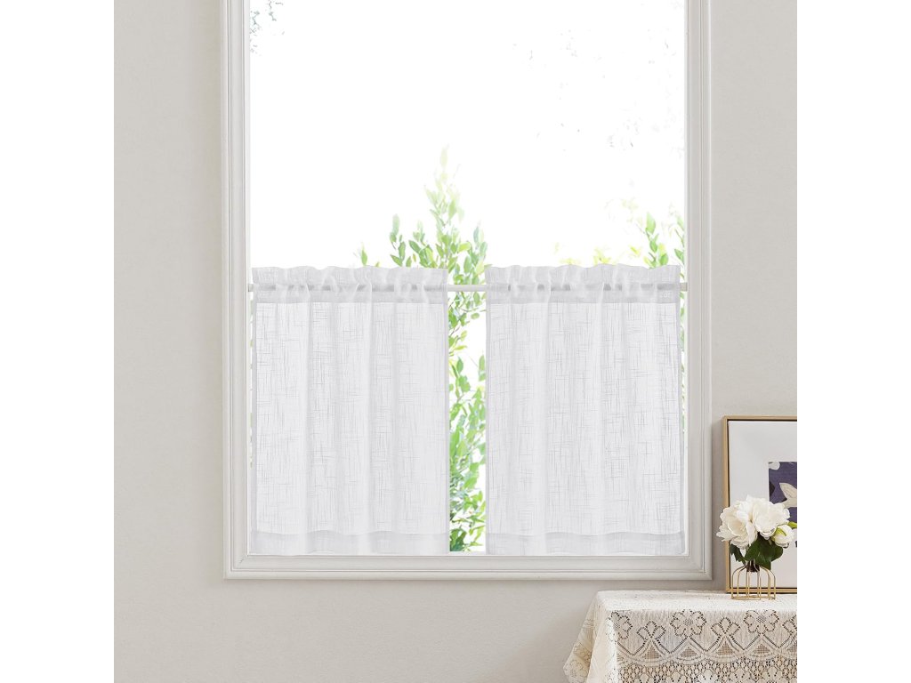 Vdechněte svěží a prosvětlenou atmosféru do své kuchyně nebo jiné místnosti s těmito krásnými síťovými záclonami PONY DANCE. Tato sada obsahuje dva panely, každý o rozměrech 60 cm na šířku a 60 cm na výšku, které jsou ideální pro menší okna. Záclony jsou vyrobeny z měkkého, lehkého polyesterového voálu s imitací lnu a zdobeny jemným křížovým motivem, který dodá interiéru elegantní a přirozený vzhled.