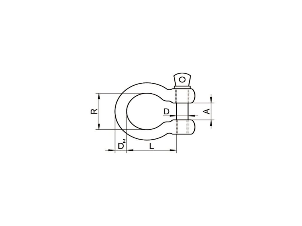 Tento zakřivený ocelový třmen z vysokopevnostní oceli je navržen pro vysoké zatížení s pracovní nosností (WLL) 4,75 tuny a bezpečnostním faktorem 6:1. Ideální pro průmyslové využití, má rozměry A = 32 mm, D2 = 19 mm, D = 22 mm, L = 71 mm, R = 48 mm. Balení obsahuje jeden kus.