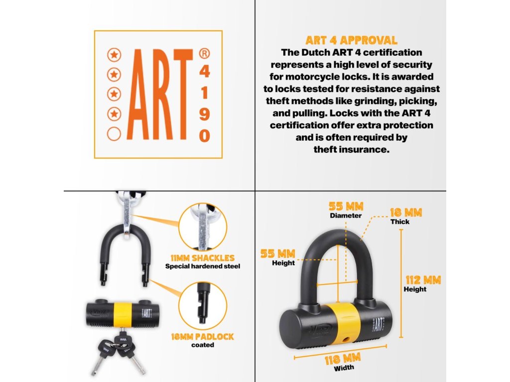 Tento zámek disponuje certifikací kvality ART 4, což znamená, že je uznáván většinou pojišťoven jako dostatečné zabezpečení pro dvoukolová vozidla (kola, mopedy, skútry a motocykly).