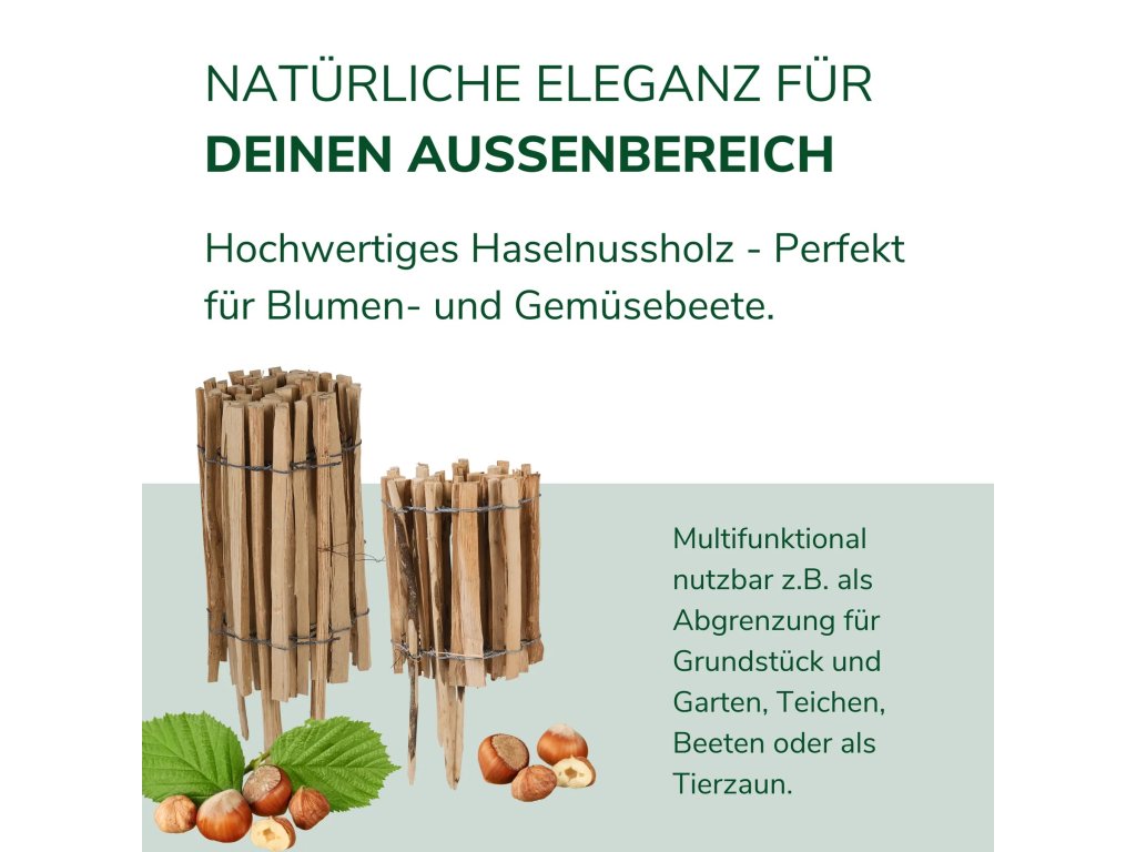 Tento kvalitní plot z lískového dřeva kombinuje přírodní vzhled s vysokou funkčností a odolností vůči povětrnostním vlivům. Díky své konstrukci je světlo propustný a působí velmi vzdušně, přesto poskytuje jasné hranice pro vaše květinové i zeleninové záhony. Lískové dřevo je vyhlášené svou pevností a dlouhou životností bez nutnosti složité údržby.