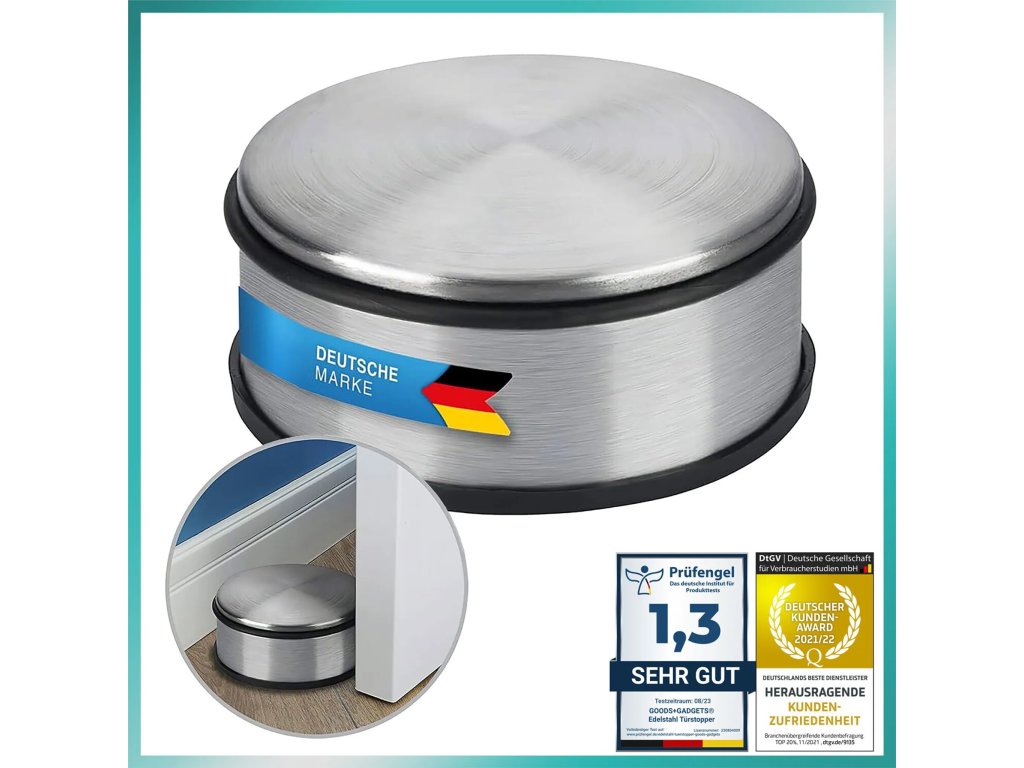 Tato masivní nerezová zarážka dveří představuje spolehlivé řešení, jak bezpečně zastavit a udržet otevřené jakékoli interiérové, kancelářské nebo dokonce průmyslové dveře. Díky své značné hmotnosti 1200 g je efektivní i proti silnému průvanu.