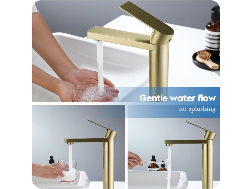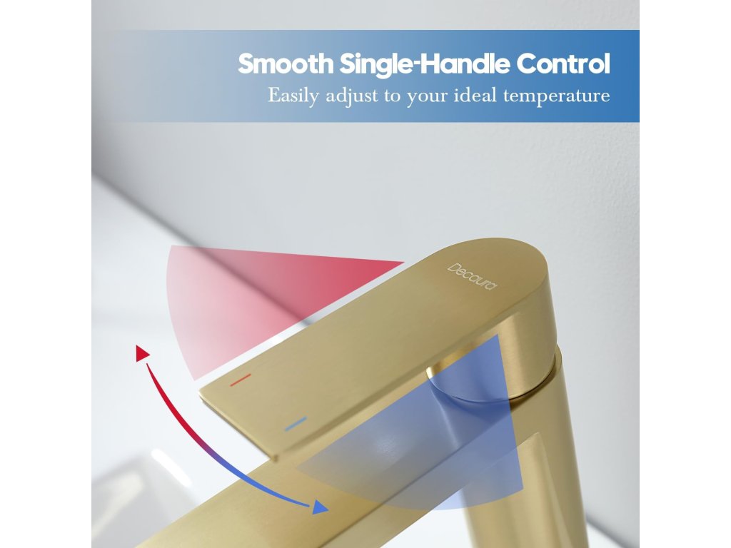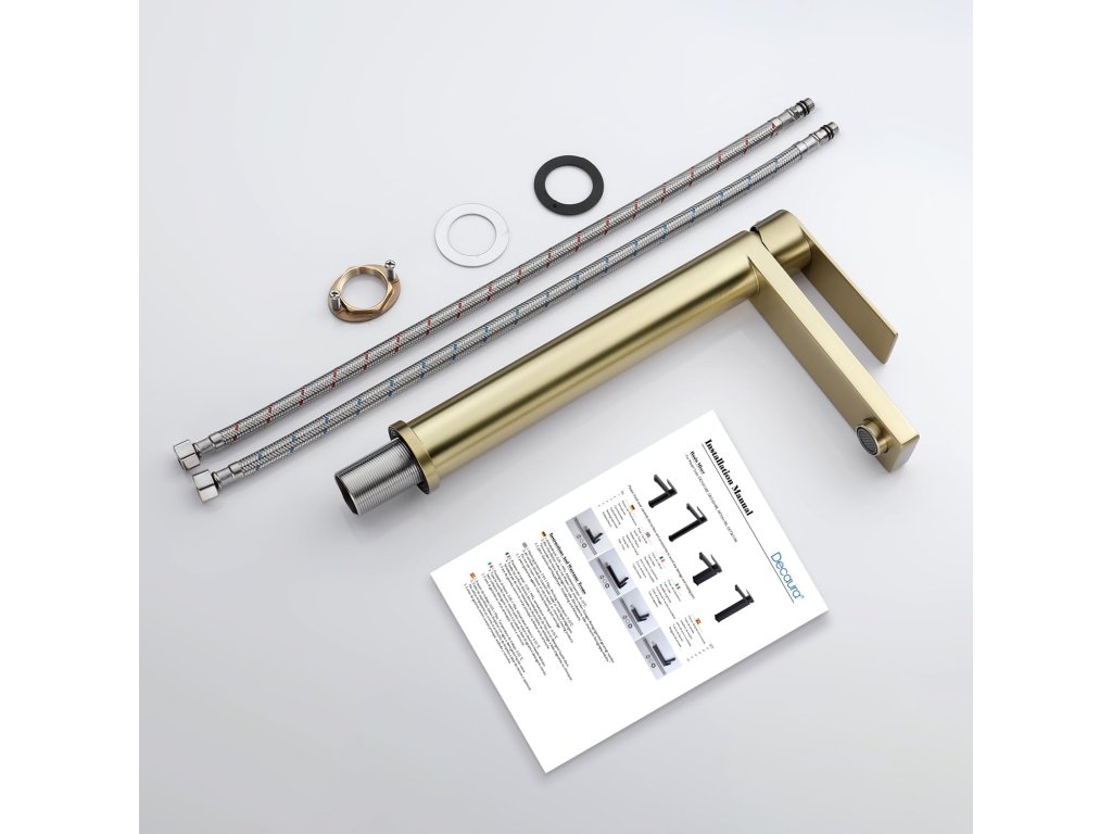 Vysoká umyvadlová baterie Decaura v elegantní zlaté barvě je vyrobena z kvalitní nerezové oceli pro dlouhou životnost a odolnost. Zlatá povrchová úprava je moderní, snadno se udržuje a nezanechává otisky prstů. Díky výšce cca 304 mm je ideální pro umyvadla bez otvoru a na desku. Vybavena vyjímatelným perlátorem pro rovnoměrný proud vody bez stříkání (lze odšroubovat klíčem 24 mm). Dlouhý závit (45 mm) a mosazná aretační matice se dvěma šrouby zajišťují stabilní upevnění. Snadná instalace, 5 let záruka na tělo a povrchovou úpravu.