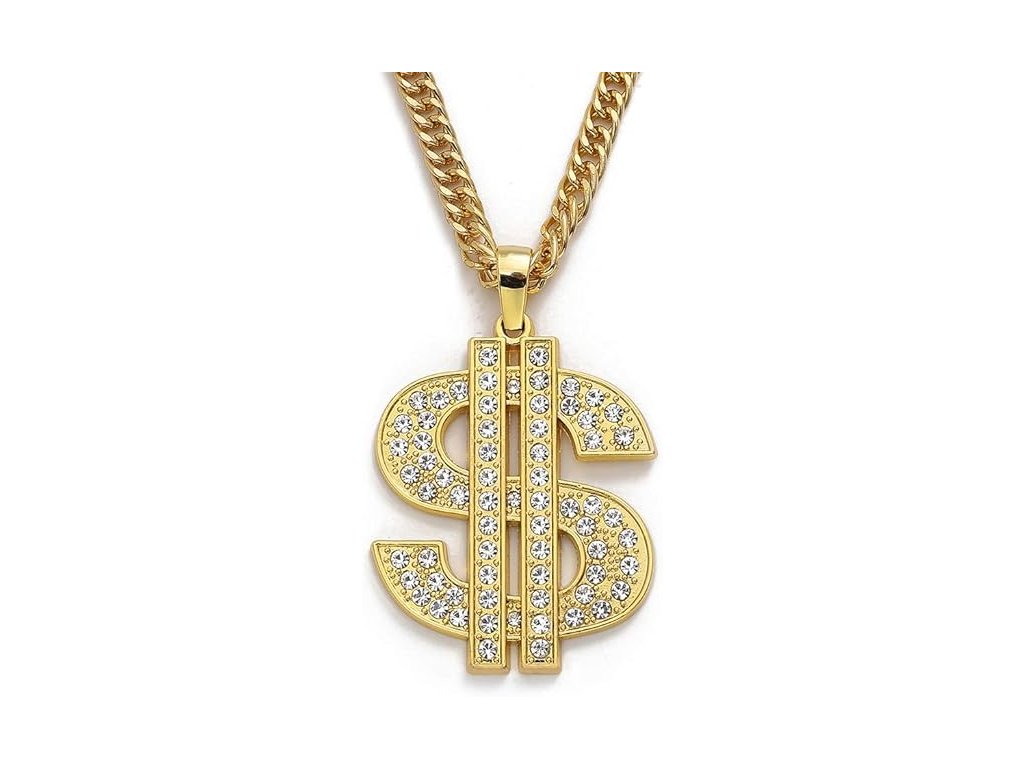 Zlatě zbarvený řetízek s přívěskem dolaru a zirkony