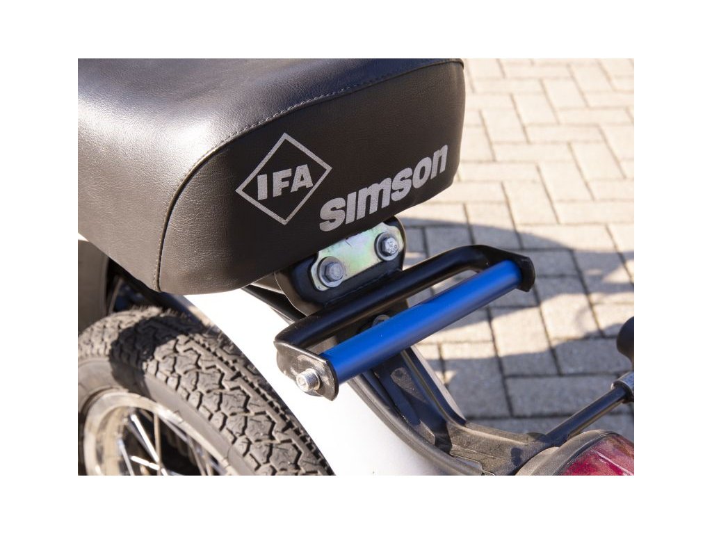 Tato zvedací rukojeť je určena pro nosiče zavazadel motocyklů Simson S50, S51, S53 a S70. Je vyrobena z modře eloxovaného materiálu.