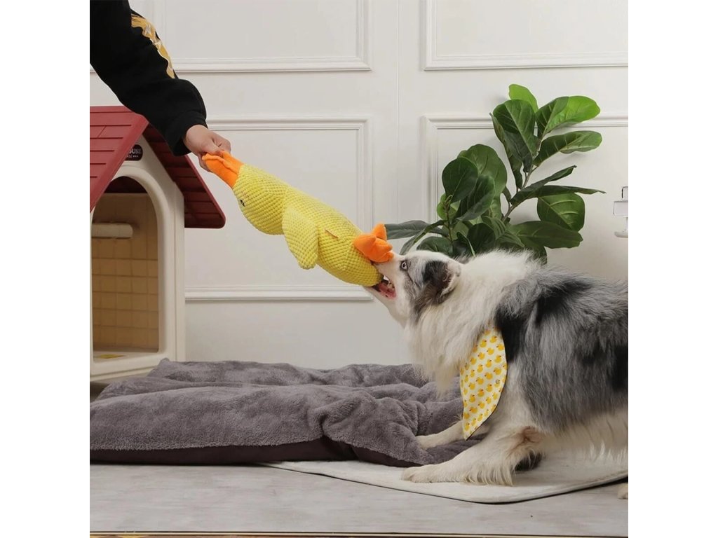 Dopřejte svému čtyřnohému kamarádovi radost a úlevu od stresu s naší žlutou plyšovou kachničkou, navrženou jako žvýkací a aktivní hračka. Tato roztomilá kachnička je skvělou volbou pro psy i kočky, které uklidňuje a zároveň je láká ke hře.