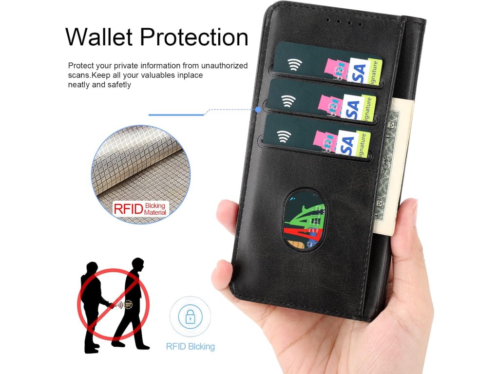 Toto flipové pouzdro nabízí tři sloty na karty – ideální pro kreditní karty, občanské průkazy nebo vizitky. Navíc obsahuje boční kapsu pro uložení hotovosti, účtenek a bankovek, což z něj dělá praktickou peněženku v jednom. Vestavěné magnetické zavírání zajišťuje bezpečné uložení telefonu i obsahu, takže se nemusíte bát náhodného vypadnutí.